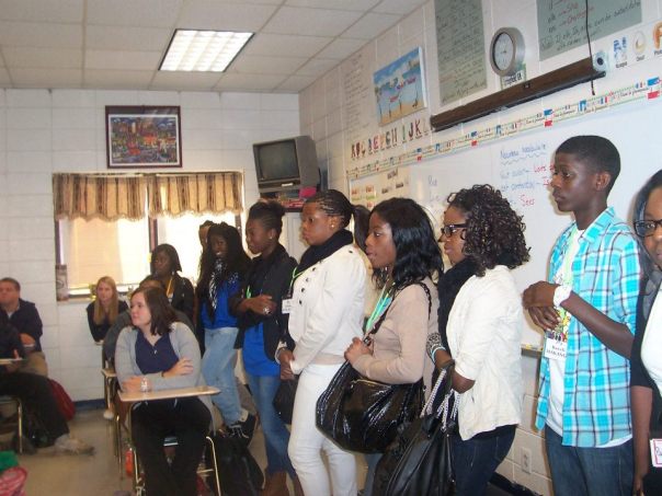 On Wednesday, the French youth visited Effingham County High School in Springfield, north of Rincon. They met students who studied French and other students, and invited them to the youth rally tonight. The French students were excited to see lockers at the school like they have seen on TV. On the way back to Rincon, they had the opportunity to see a large cotton field which they found very interesting.