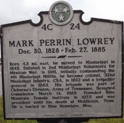 One of the most interesting Mississippi veterans of the Civil War was M. P. (Mark Perrin) Lowrey. Lowrey was a veteran of the Mexican War, then a brick mason who became a Baptist preacher in 1852. When the Civil War began, he was pastor of the Baptist churches at Ripley in Tippah County and Kossuth in Alcorn County. Like many of his neighbors in northeast Mississippi, he did not believe in slavery, yet he went to Corinth and enlisted in the Confederate Army. He was elected colonel and commanded the 32nd Mississippi Regiment. Lowrey commanded a brigade at the Battle of Perryville, where he was wounded. Most of his military career was in Hood’s campaign in Tennessee and fighting against Sherman in Georgia. He was promoted to brigadier-general after his bravery at Chickamauga, and played a key role in the Confederate victory at Missionary Ridge. In addition to fighting, he preached to his troops. One of his soldiers said he would “pray with them in his tent, preach to them in the camp and lead them in the thickest of the fight in the battle.” Another soldier said Lowrey “would preach like hell on Sunday and fight like the devil all week!” He was frequently referred to as the “fighting preacher of the Army of Tennessee.” He led in a revival among soldiers in Dalton, Georgia, and afterwards baptized 50 of his soldiers in a creek near the camp. After the war, Lowrey founded Blue Mountain College in Tippah County, and the Mississippi Baptist Convention elected Lowrey president for ten years in a row, 1868-1877.